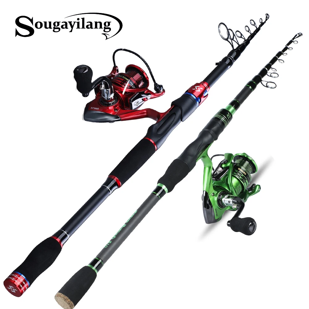 Cheap Sougayilang 1.8m 2.1m Spinning Fishing Rod Combo Telescopic Fishing Rod and 5.5:1 Fishing Reel Trav